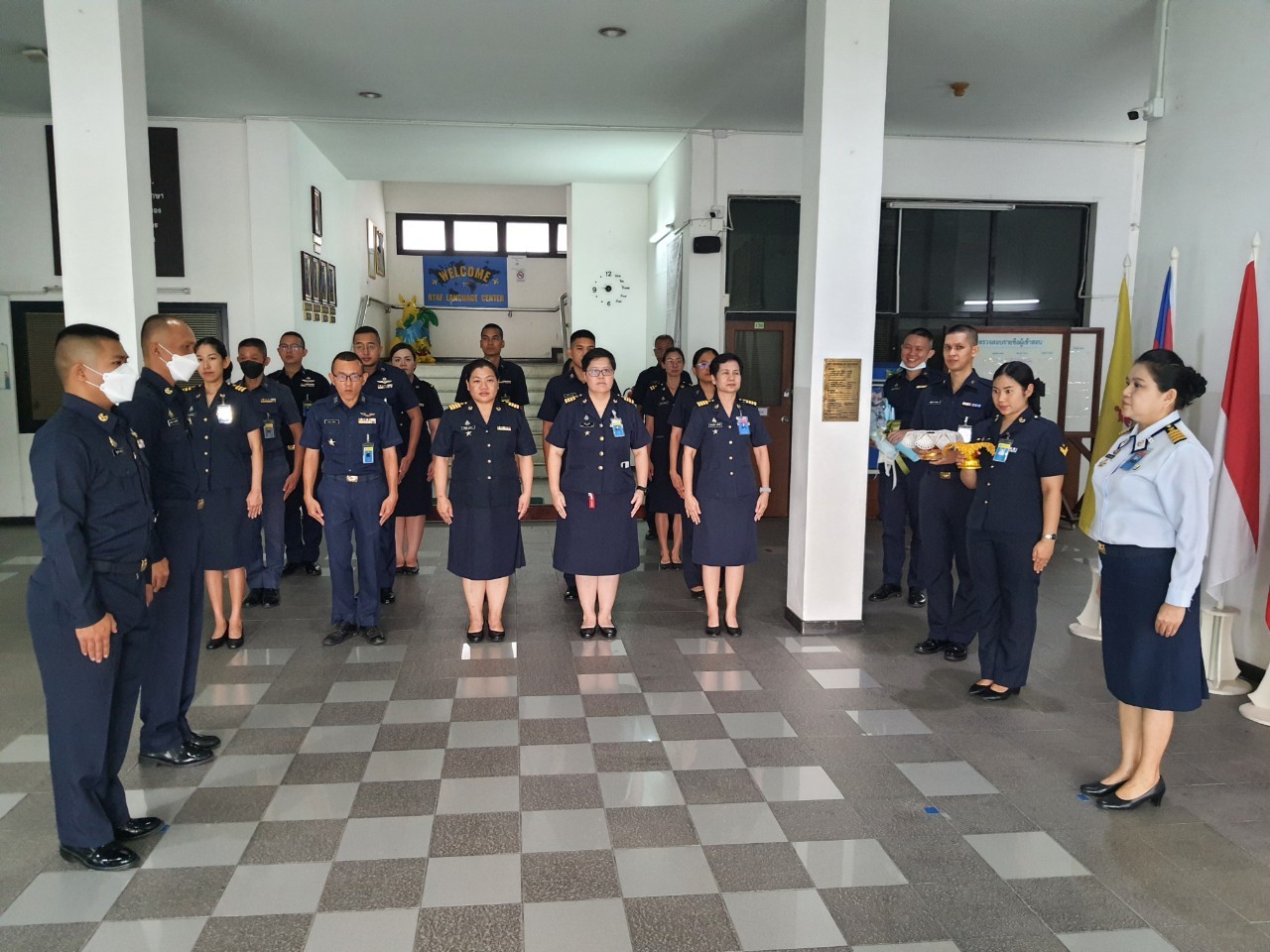 วันพฤหัสบดีที่ ๙ พ.ย.๖๖ น.อ.หญิง โศรยา เอี่ยมสมุทร ผอ.ศภษ.ยศ.ทอ. เป็นประธานในพิธีประดับเครื่องหมายยศนายทหารชั้นประทวน พร้อมด้วยข้าราชการ ลูกจ้างและพนักงานราชการ ร่วมแสดงความยินดี กับข้าราชการ ศภษ.ฯ ที่ได้รับการประดับยศสูงขึ้นเป็น พ.อ.ท.นัฐพงษ์ รุ่งสว่าง ณ ศภษ.ยศ.ทอ. |